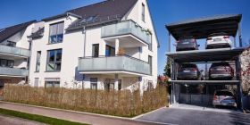Благодаря высоко-технологичному автопарковочному оборудованию Парклифт 462 Wöhr D в новом жилом 6-ти квартирном доме, на площади всего в 28 м2, были созданы 6 комфортабельных паркомест для парковки автомобилей высотой до 200 см. и весом до 2600 кг.