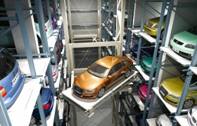 Автоматический надземный паркинг в историческом здании Гамбурга для 132 паркомест, размещённых на 17 уровнях.